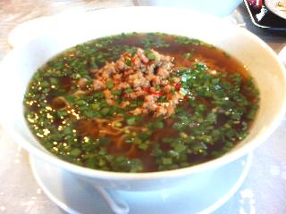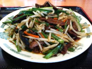 トンカツの卵とじ、蚕豆、シウマイ、キュウリとカブの漬け物、冷麺、ビール(1104kcal) |