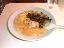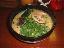 | 一言 | 谷保駅の近くです。カウンターだけの小さなお店で、外装も店内もシンプルできれいです。コクのある白濁豚骨スープでした。麺は九州風と違って細麺ではなく黄色で中くらいの太さの縮れ麺です。¥150で替え玉もありますが茹でるのに時間がかかりそうなので注文のタイミングに注意がいると思います。トッピングは茹でモヤシ、海苔、チャーシュー、青ネギです。カウンターには紅ショウガ、辛子高菜も用意されていました。また、11:00〜14:00までタイムサービスで麺大盛りか味玉かライスの一品がプラスできます。 「ラーメンのカロリー表」 2006/4 閉店し新たに「福助ラーメン」となったそうです。 |