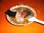 | 一言 | 東大和市駅から近い青梅街道沿いにあるテーブル2席とカウンターの小さいお店です。醤油らーめんを食べました。店内に製麺機が置いてあるので自家製麺のようで、醤油らーめんの麺はストレートな細麺でした。ボリュームは若者には物足りないかと思いますが、スープが澄んだとても上品な味で細麺とも良くマッチしており味わいを楽しむ一品という感じです。ただちょっとかえしの醤油とスープがなじみきっていない印象がありましたがこれからもっと美味しくなりそうな予感もします。トッピングは歯ごたえのあるチャーシュー、海苔、青菜、半熟の味卵が半分、メンマ、ネギと貝割れ大根がのっています。他のお客さんが注文していた味噌らーめんは中華鍋で炒めた野菜をスープで軽く煮込んで作っていました。次回はそっちにもチャレンジしてみたいです。 「ラーメンのカロリー表」 2005/4 最近昼間に店の前を通っても開いていることがありません。どうやら閉店したようです。 |