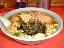 | 一言 | スタミナ丼。通称「スタ丼」のお店です。国立・国分寺・小金井・八王子・立川、etcにあるチェーン店ですが「すた丼ホームページ」にはのっていません。ですがサイト内の立川店の写真を見ると外装がそっくりなのできっとまだ未掲載なだけなんだろうと思います。以前国立東店でたまにスタ丼やチャーハンを食べましたが今回初めて小平店へ行き未食のラーメン(醤油)を食べました。国立音楽高校の前の国立店の看板に「サッポロラーメン」とあるように北海道系スープのようでした。メニューに「みそ・塩・醤油」の順番に書かれているところをみてもそう推察されます。いろいろな掲示板でラーメンはまずいと書かれていましたがこの値段なら納得の味でした。量はご飯物と違ってごく普通でやや細麺。モヤシ、コーン、メンマ、海苔、チャーシューがトッピングされています。チャーシューの味加減はなかなかでしたのでチャーシュー丼(¥550)もけっこういけるんじゃないでしょうか。ラーメンとミニスタ丼のセット(¥800)などもありますがとにかくお腹いっぱいになるであろう事は保証します。 スタ丼を食べてきました。相変わらずボリューム満点です。塩味がはっきりしていてちょっと辛めの味付けですがたっぷりのご飯を食べ切るにはちょうど良い加減です。満足しました。 「ラーメンのカロリー表」 |