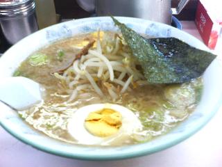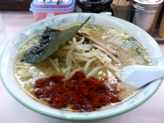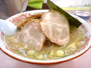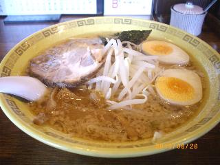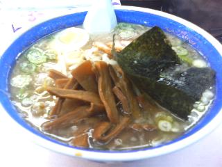 | 一言 | 表からみると狭そうに見えますが中にはテーブル席や座敷があります。ラーメンを食べました。色白の中太麺にニンニクの風味が効いた醤油味スープのラーメンです。トッピングにゆで卵が半分のってます。半チャーハンとのセットや各種定食類もあります。 閉店しました。 「ラーメンのカロリー表」 |