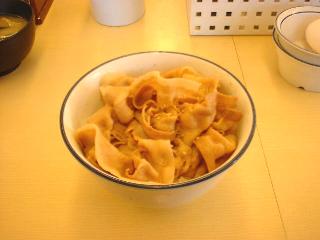 | 一言 | 日本ビリヤード界期待の星・土方隼人君のホーム「ビリヤードステーション・ドリームショット」のすぐそばで以前「牛豚ラーメン」だったところに2005/5/9に開店したお店です。ホームページによるとご主人がアメリカにいらしたときに美味しいラーメンが食べたくて自作していたところ趣味がこうじて開業にいたったそうです。醤油ラーメン大盛りを食べました。まず麺が独特です。硬めの太麺ですがうどんともパスタとも違った食感でモチモチとして良い感じでした。また最後までのびずに食感が保たれます。スープは魚介風味の醤油味。私はもう少し醤油が強めの方が好きですがそのかわり飲みやすいのでスープも完飲です。普段は茹で味玉子か揚げ味玉子のどちらか選べるそうですが今回は「しばらく揚げ味玉子はお休み。」とのことだったので茹で味玉子が入っていました。卵も半熟で上品な味付けがしてあり美味しかったです。この味、ボリューム、トッピング内容で¥600なら大満足です。ホームページもなかなかおもしろいですよ。 「とっちゃんらーめんのWEBサイト」 「ラーメンのカロリー表」 2006/5/14 残念ながら閉店しました。 |